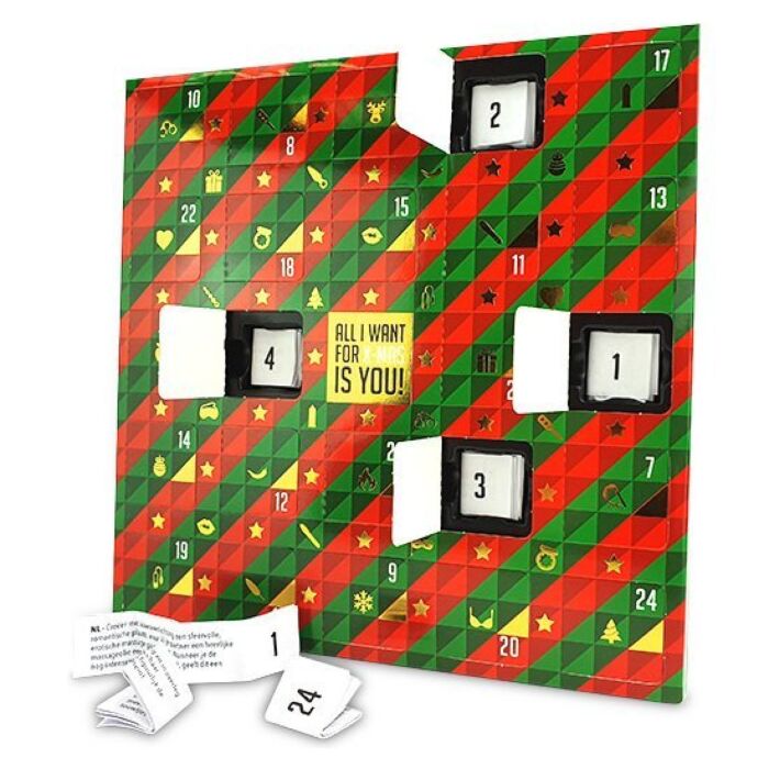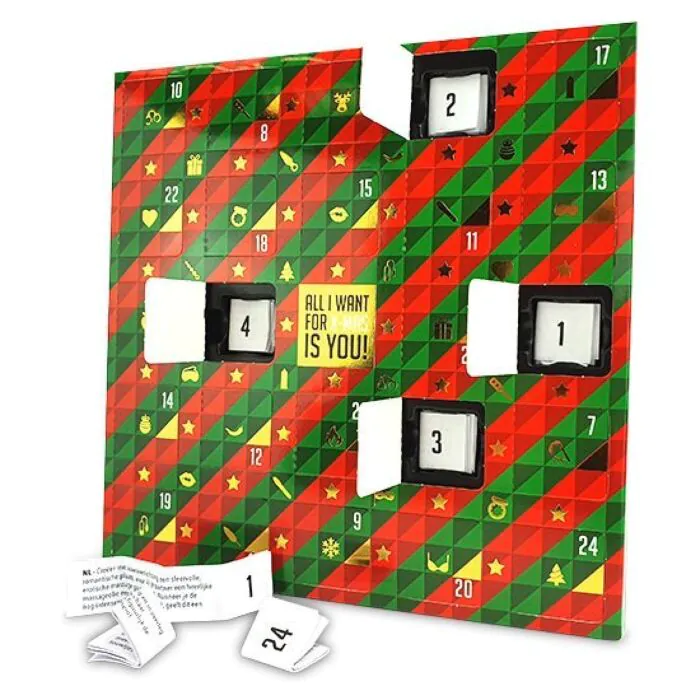 Încântă-ți partenerul cu 24 de provocări erotice menite să intensifice atmosfera de sărbătoare. Calendarul furnizează o senzație unică de anticipare, fiecare ușă deschisă dezvăluind un nou joc sau o activitate care va stimula dorința. Versatilitatea lui vine din faptul că provocările sunt disponibile în 10 limbi, oferind accesibilitate tuturor.