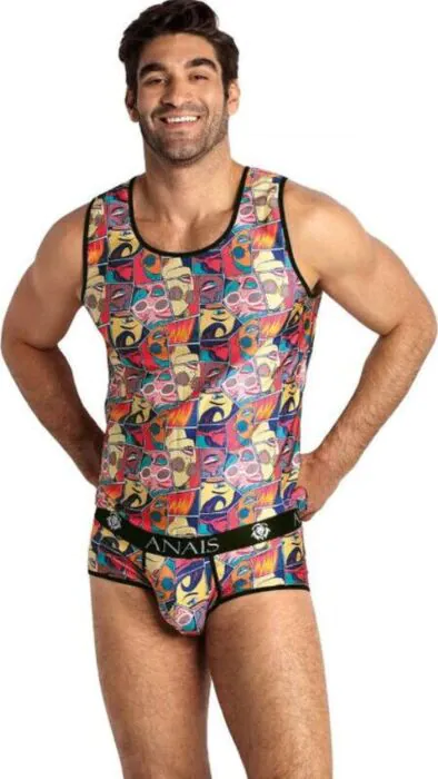Confortul și stilul se unesc în această cămașă cu bretele ANAIS MEN. Designul său clasic cu imprimeu de benzi desenate și ajustarea recomandată pe corp o fac o opțiune ideală pentru cei care doresc să iasă în evidență cu o notă de originalitate. Confecționată dintr-un material moale care combină 80% poliamidă și 20% elastan, această cămașă se adaptează siluetei tale fără a renunța la confort.
