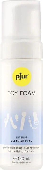Curățare profundă și delicată cu PJUR Toy Foam, o spumă special concepută pentru a îndepărta eficient reziduurile de lubrifianți pe bază de apă și silicon. Este ușor de folosit, iar formula sa dermatologică îl face sigur pentru piele.