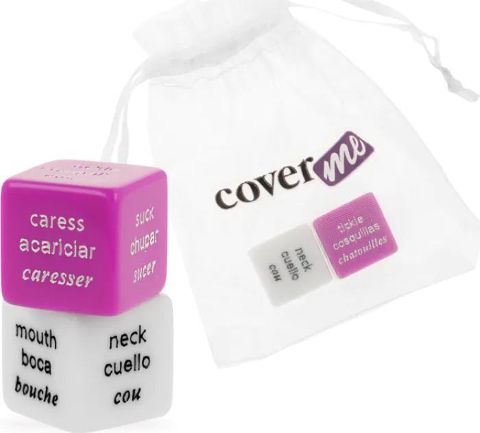 Joacă-te cu dorințele tale și explorează noi combinații de acțiuni și locații cu setul de joc de zaruri erotice COVERME. Fabricate din rășină sigură pentru corp, aceste zaruri te ajută să creezi momente incitante în doi. Cu o pungă practică din satin, poți să le iei oriunde, astfel că distracția nu are limite.