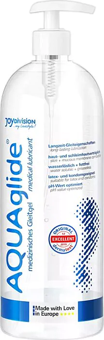 JOYDIVISION AQUAGLIDE 1L este un lubrifiant anal pe bază de apă, ideal pentru o experiență fluidă. Este compatibil cu prezervativele și jucăriile erotice.
