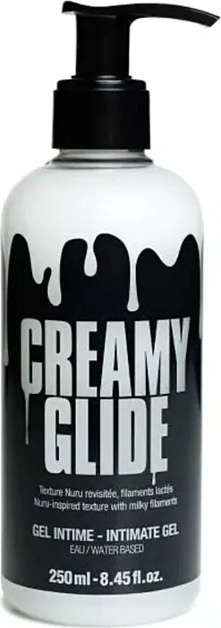 Simularea unei experiențe intimate realiste cu gelul CREAMY GLIDE. Acest lubrifiant pe bază de apă imită fluidul seminal, având o textură fluidă care se simte natural. Cu un conținut de 95% ingrediente naturale, este compatibil cu majoritatea jucăriilor erotice și se poate folosi atât pentru masaj, cât și în jocuri intime.