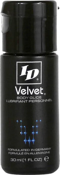 Alunecarea intensă și senzația de catifelat se amplifică cu lubrifiantul de silicon ID Velvet. Formula sa extraconcentrată asigură o experiență de durată, recomandată pentru cei care doresc să prelungească plăcerea. Este fabricat în SUA și proiectat în Germania, fiind compatibil cu latexul, fără parfum și potrivit pentru pielea sensibilă.