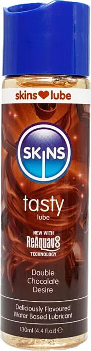Îmbunătățește-ți experiențele intime cu lubrifiantul cu aromă de Dublu Ciocolată. Formula sa pe bază de apă aduce o senzație de alunecare, perfectă pentru jocuri orale și întâlniri savuroase. Cu tehnologia inovatoare Skins Reaquav8, poți reîntregi senzația de alunecare cu un simplu lamă sau un strop de apă, fără a adăuga mai mult produs.