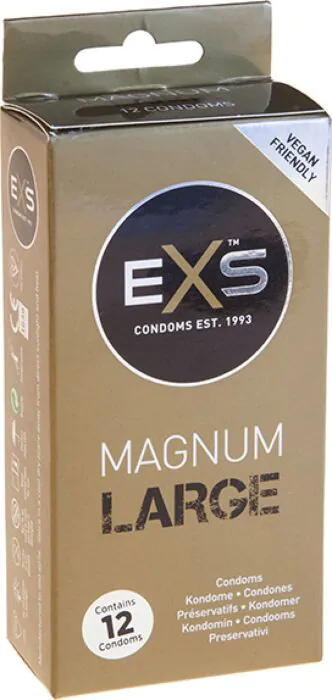 Confort și siguranță pentru cei care au nevoie de mai mult spațiu. Prezervativele Magnum Large de la Exs au o lățime nominală de 60 mm și o lungime de 212 mm, oferind o senzație naturală, piele pe piele. Fabricate din latex natural cu lubrifiant pe bază de silicon, acestea sunt excelente pentru penes mai mari.